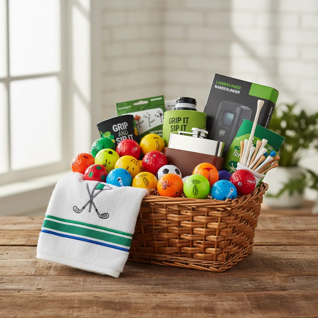 Skip the generic polo. Here's how to build a hilarious, actually fun golf gift basket for any budget — gag gifts, gear, and one big surprise item.